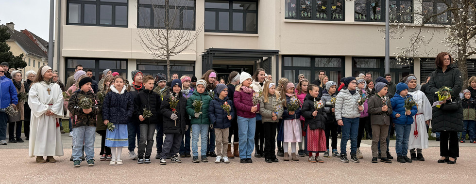 Bei der Palmweihe waren besonders viele Kinder der Volksschule anwesend. Es war schön zu sehen, wie zahlreich sie gekommen sind und gemeinsam an der Feier teilgenommen haben.