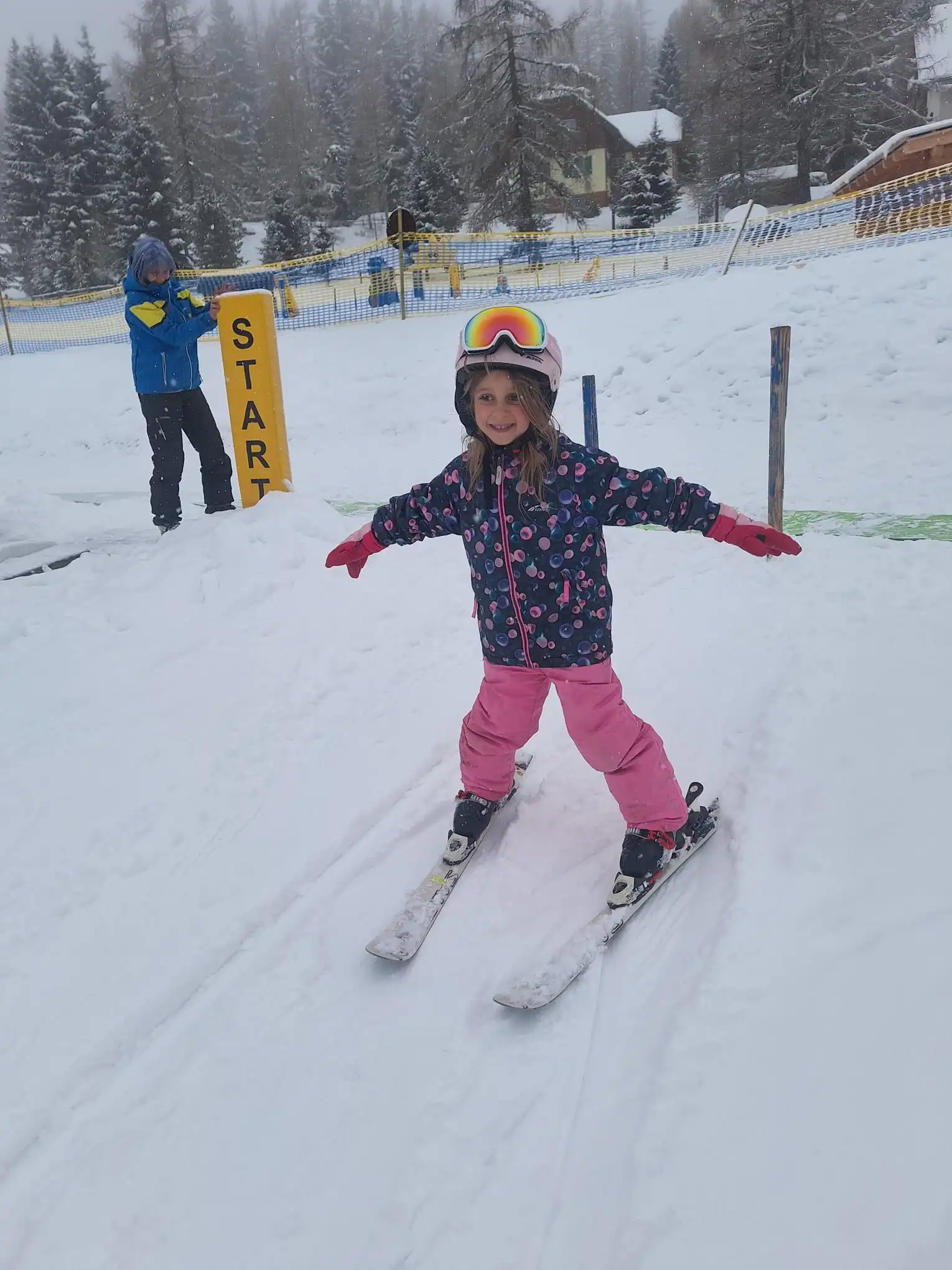 An zwei Tagen schneite es kräftig, und die Landschaft war tief verschneit. Trotzdem ließen sich die Kinder die gute Laune nicht verderben. Mit viel Motivation und Freude übten sie das Skifahren, meisterten ihre ersten Schwünge oder verbesserten ihr Können auf der Piste.